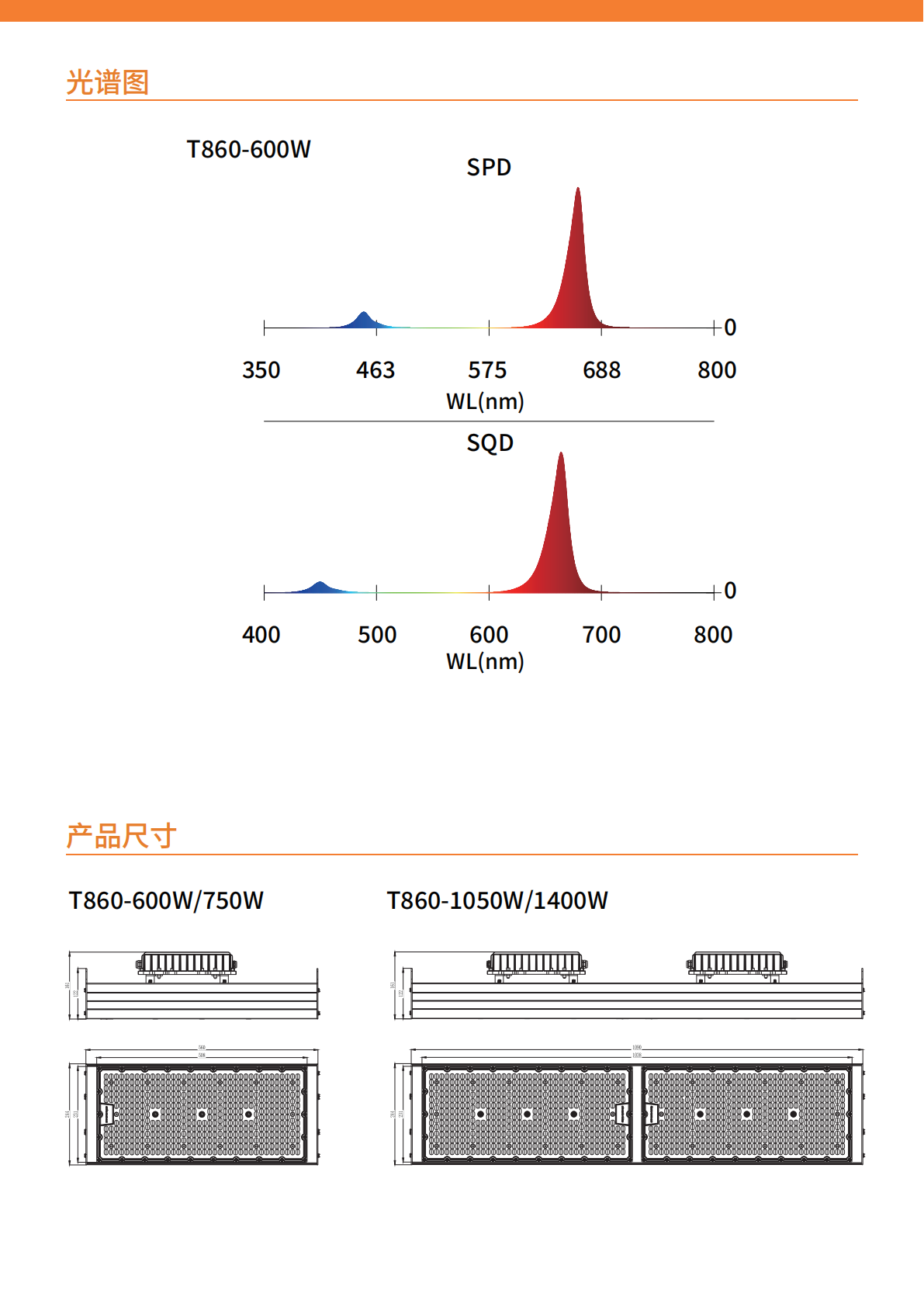 T860 LED 植物生长灯 ·可快速直接替代传统高压钠灯 ·支持定制化光谱设计 ·高光效,高达4.8umol/J ·相比于传统高压钠灯,可节省高达30%的能源 ·集成控制系统,一个终端可控制多台灯具 ·无线控制系统,APP智能控制 ·IP66防护等级